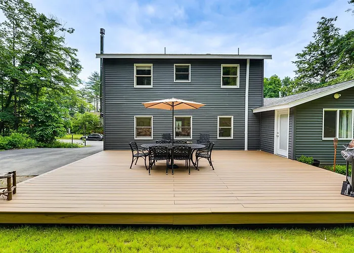Lakeside Lodging Villa features a sunny patio for guests' comfort. An array of activities such as windsurfing, canoeing, and snow skiing can be enjoyed on-site.